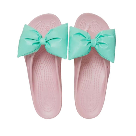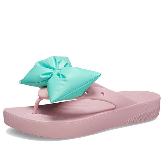 Crocs (WMNS) Classic Platform Bow Flip Flops “Pink Teal” 210182-606