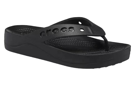 (WMNS) Crocs Baya Platform Cut Out Detail Flip Flops ‘Black’ 208395-001