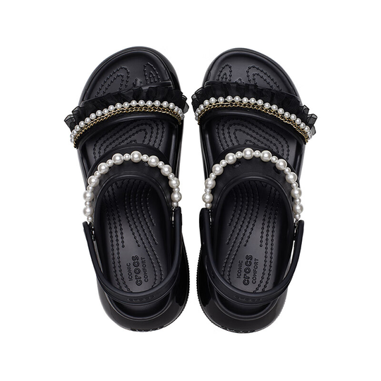 (WMNS) Crocs Mega Crush Pearl Ruffle Sandal ‘Black’ 210179